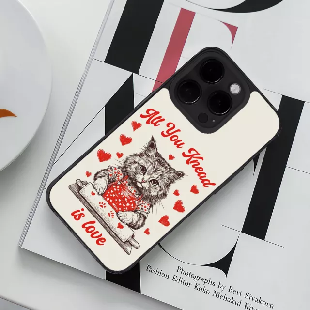 All You Knead Is Love iPhone 16/15/14/13 Case – Vintage Love Phone Case for iPhone – Cute Cat Protective Phone Case