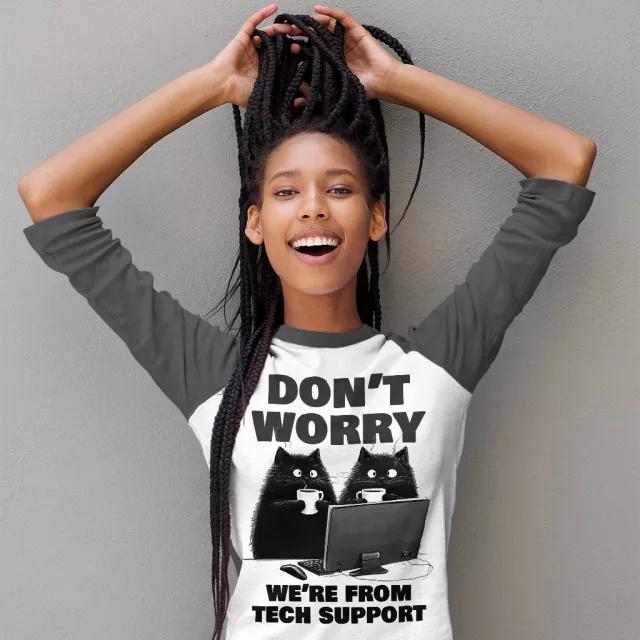 Don’t Worry We’re From Tech Support Baseball T-Shirt – Cool Cat 3/4 Sleeve – Funny Gift Raglan Jersey Shirt