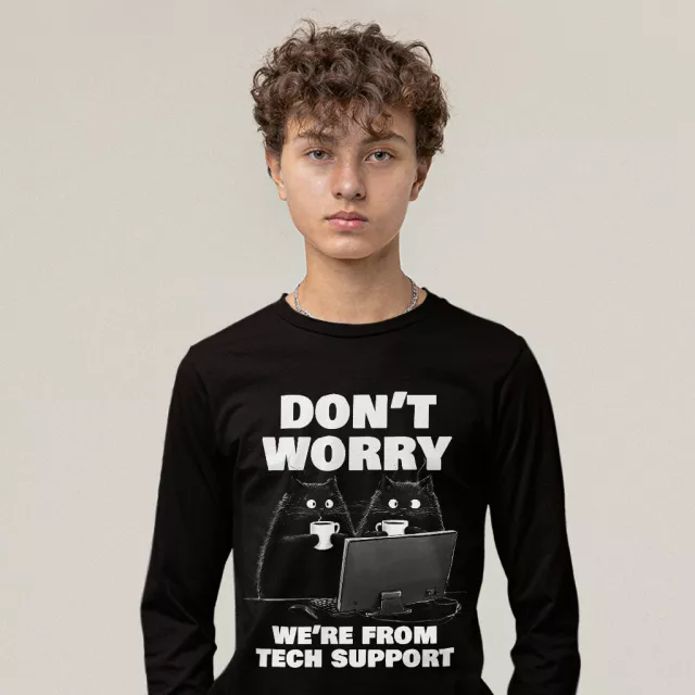 Don’t Worry We’re From Tech Support Long Sleeve T-Shirt – Cool Cat T-Shirt – Funny Gift Basic Tee