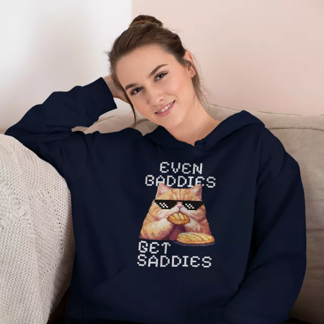 Even Baddies Get Saddies Hoodie – Cat Meme Hooded Sweatshirt – Cat Lover Unisex Hoodie
