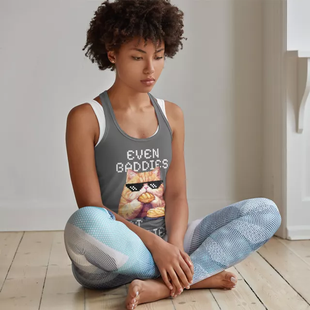 Even Baddies Get Saddies Racerback Tank – Cat Lover Tank Top – Cat Meme Tank