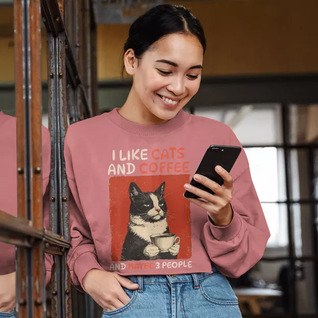 I Like Cats And Coffee Cropped Long Sleeve Sweatshirt – Funny Cat Women’s Crop Top – Vintage Cat Long Sleeves Pullover