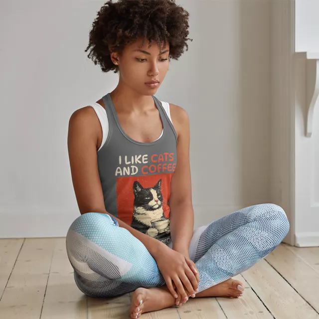I Like Cats And Coffee Racerback Tank – Funny Cat Tank Top – Vintage Cat Tank
