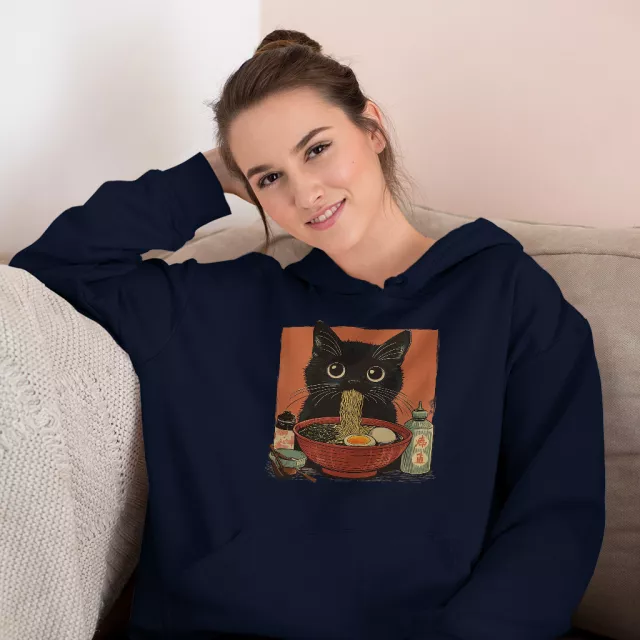Noodle Cat Hoodie – Foodie Hooded Sweatshirt – Ramen Cat Unisex Hoodie