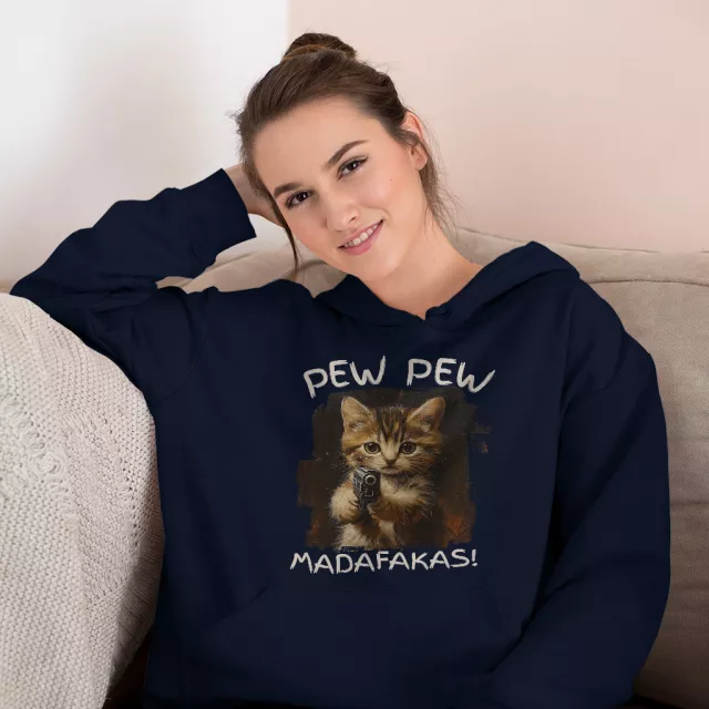 Pew Pew Madafakas Hoodie – Cat Lover Hooded Sweatshirt – Funny Kitten Unisex Hoodie
