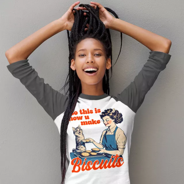 So This Is How You Make Biscuits Baseball T-Shirt – Cat Kneading 3/4 Sleeve – Retro Cat Raglan Jersey Shirt