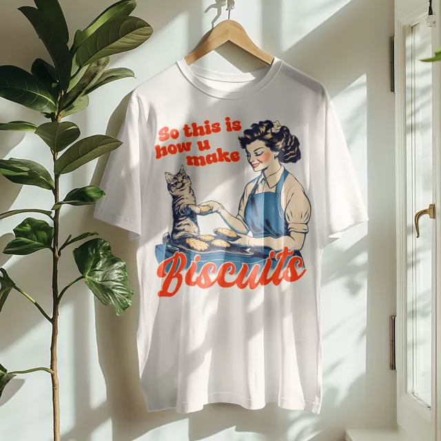 So This Is How You Make Biscuits T-Shirt – Cat Kneading Heavy Cotton Tee – Retro Cat Shirt